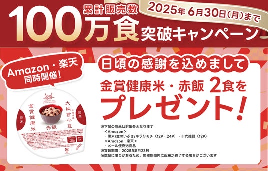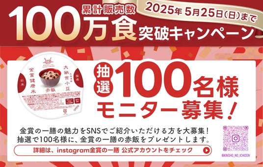 100万食突破の感謝の気持ちを込めて、公式インスタグラムでモニターキャンペーンを実施。抽選で100名の方に、『金賞の一膳』シリーズから、新商品の『金賞健康米の赤飯』3パックをプレゼントいたします。