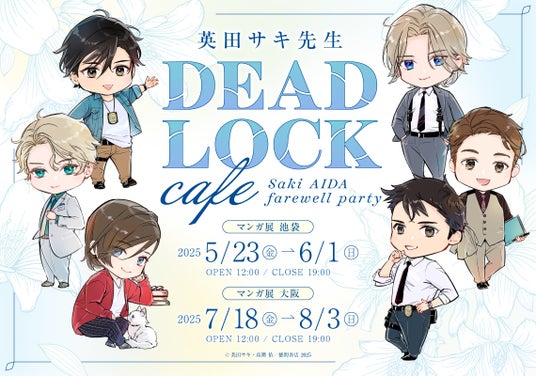 株式会社TORICO(本社:東京都千代田区、代表取締役社長:安藤拓郎)は、英田サキ先生追悼コラボカフェ『DEADLOCK cafe -Saki AIDA farewell party-』 at マンガ展 を2025年5月23日(金)から6月1日(日)まで同社が運営する東京・池袋の「マンガ展 池袋」にて、その後2025年7月18日(金)から8月3日(日)に大阪谷町の「マンガ展 大阪」にて開催いたします。