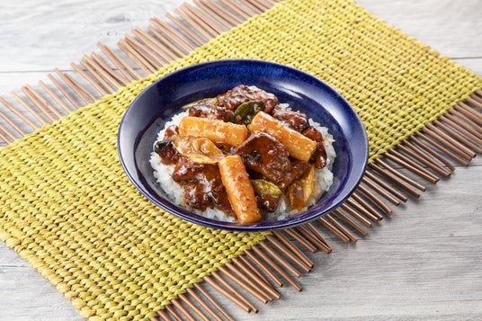 炭火で焼いた鶏肉とトッポギを特製のヤンニョムダレで味付けした、ピリ辛な味わいの韓国風焼き鳥丼です。
