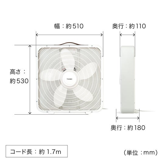 本製品は44cmの大型羽根で強力な風を起こすことのできるボックス型の扇風機です。