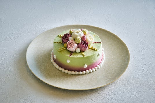 抹茶の生地にあずきの甘さとグリオットチェリーの酸味を加え、和と洋を融合させた100%植物由来のグルテンフリーのケーキ。「第34回プリンスホテル料理コンクール」で優勝した当ホテルのパティシエ吉野香菜考案のメニューです。