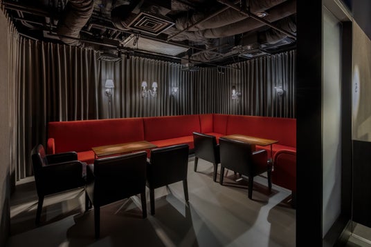 最奥のプライベートルームでは、カーテン前に浮遊するようにも見えるウォールランプが印象的、かつ独創的なデザイン空間を演出しています。