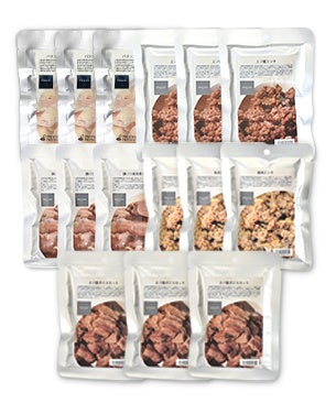 お肉メインの5種類のレトルトが3袋ずつ入った15個セットです。セット内容は、エネルギーを作るのに欠かせないビタミンを多く含む「豚バラ軟骨柔らか煮」、食べ応えばつぐんの「エゾ鹿 ダイスカット」、フードに絡めやすく低カロリーな「馬肉ミンチ」と「エゾ鹿 ミンチ」、シンプルだから使いやすい「バランス鶏ささみカット」の5種。これからの季節に大切な体力づくりや水分補給にもお勧めのアイテムを厳選して詰め込みました。通常価格8,250円から29.6%オフの5,800円でのご提供です。