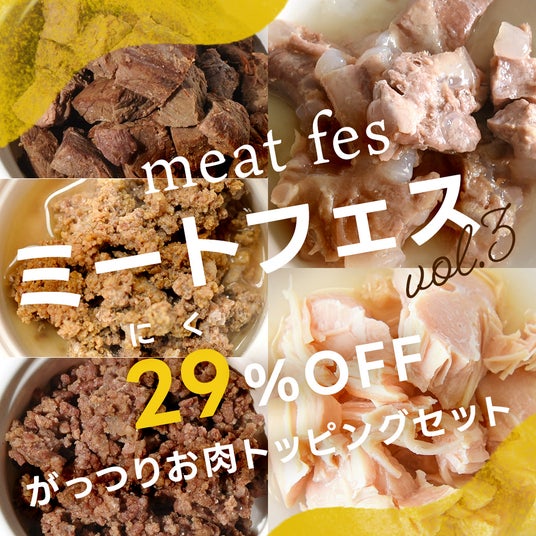 プレミアムドッグフードメーカー「POCHI」(運営:マーケティングパートナー株式会社、本社所在地:東京都新宿区、代表取締役社長:権田真司、Tel:03-6772-8194、https://www.pochi.co.jp/)は、お肉をたっぷり使ったレトルトフードがお得に買える「POCHIのミートフェス」第3弾を5月23日(金)から開始します。POCHI自慢のレトルト商品から、お肉を使ったレトルトを詰め込んだセットを、肉にちなんで“29”%オフの特別価格で販売します(数量限定)。