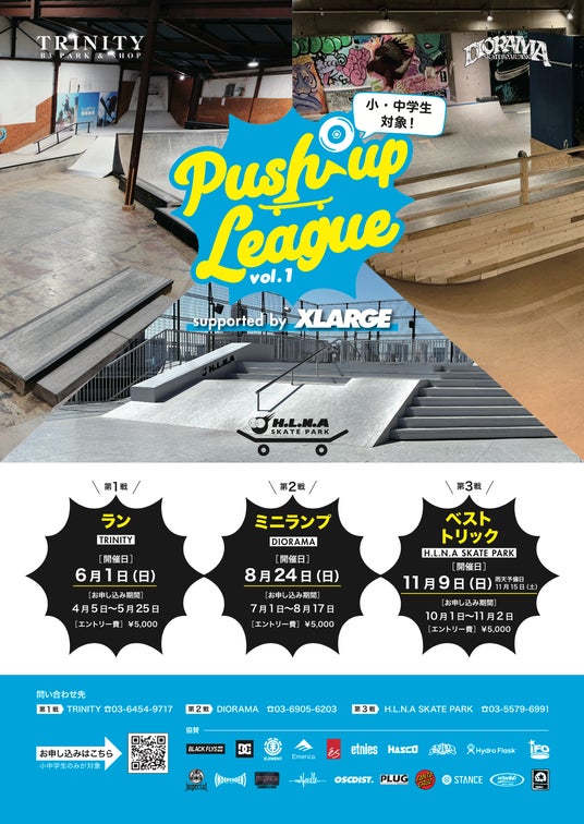 【XLARGE協賛】小・中学生対象スケートボード大会『 Push up League 2025』第1戦、6月1日(日)TRINITYで開催!