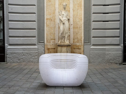 130が開発した“格子構造”(再生PET素材を用いた造形技術)によって、家具・照明・空間要素をモノマテリアルかつ循環可能な形で具現化。独自の連続フィラメント構造(Continuous Filament Construction)から生まれるこの軽量かつ堅牢なフレームは、家具の概念を刷新し、循環型デザインの新たな可能性を拓くものです。