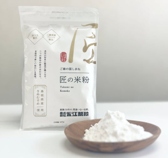 島根県松江市で創業150年を迎える株式会社永江製粉(本社:島根県松江市、代表取締役:永江美紀)は、「二重浸漬ブレンド製法」×「杵つき製法」を融合した新商品『匠の米粉』を発表しました。この商品は永江製粉 オンラインショップにて購入可能です。