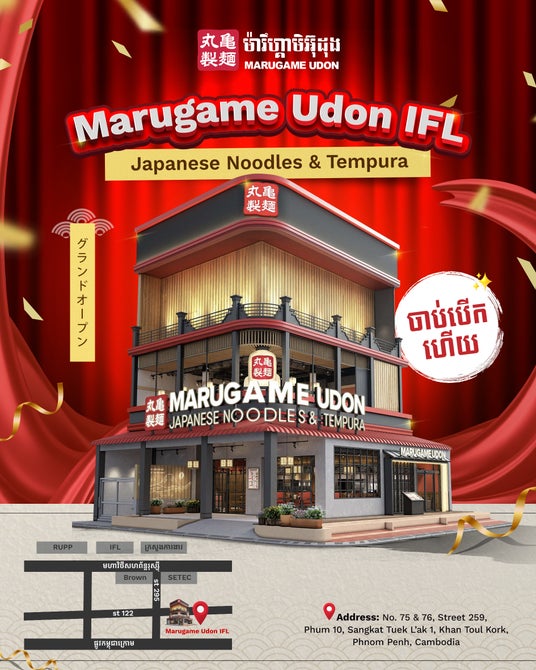 王立プノンペン大学・外国語研究所(IFL)エリアに丸亀製麺の5店舗目をオープン