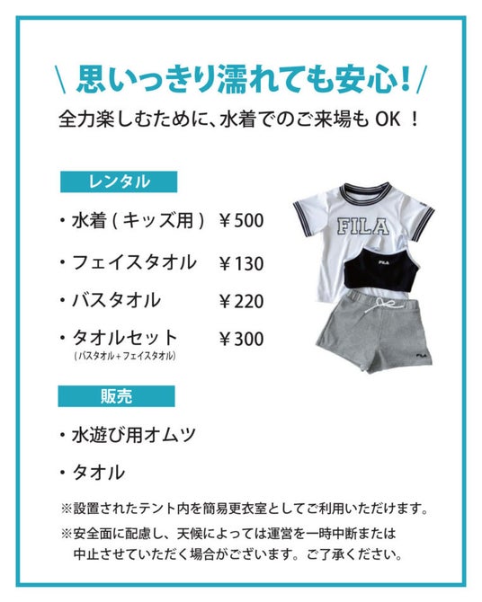 水着レンタルも完備で、手ぶらでの参加も大歓迎。こどもたちの笑顔がはじける、夏限定のアクティビティをお楽しみください。
