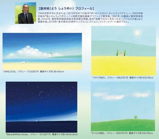 地平線から広がる情景、ゆっくり変化していく色彩のグラデーション、人々の心に寄り添うあたたかい風景を描き続ける葉祥明の世界。作品のなかで生き生きと登場するキャラクタージェイクやはちぞうに会いに来てください。