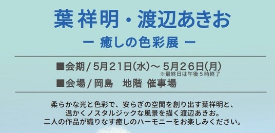 【甲府岡島 地階催事場】『葉祥明・渡辺あきおー癒しの色彩展ー』5/21(水)~5/26日(月)まで 開催中。メルヘンの巨匠2人の爽やかな優しさ溢れる 約50点版画と原画を展示販売。