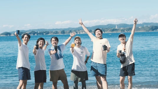 コラボビール「Camp Sea You-Session Saison-」は「横浜ビール」で最もキャンプを愛しているヘッドブルワー井田 章一と、ウクレレシンガー宮 武弘を中心に、アウトドア好きなメンバーでキャンプをしながら考えた、外に出掛けて皆で飲みたくなるビールです。⽸ビールのラベルデザインはイラストレーターのイソガイヒトヒサ。キャンプ中に焚き⽕を囲んでいる「横浜ビール」のブルワー3人と、ウクレレを奏でる宮 武弘が描かれています。