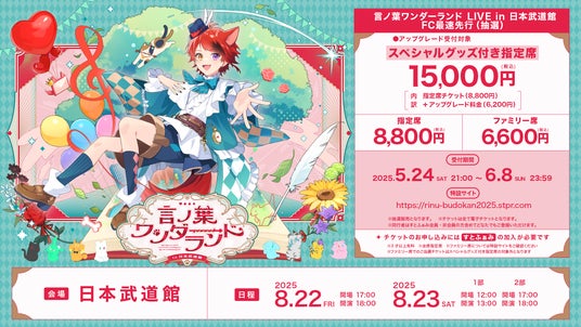 ― 『言ノ葉ワンダーランド LIVE in 日本武道館』2025年8月22日(金)・23日(土)開催、3rdフルアルバムは2025年8月13日(水)にリリース!―