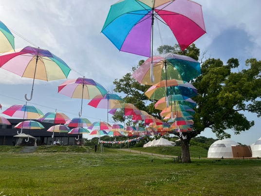 梅雨が待ち遠しくなる!グランピング施設「おかやまグランピングソラニア」に100本の傘が出現 「アンブレラスカイ」を開始