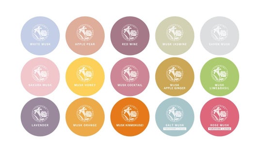 ・ホワイトムスク・アップルペアー・レッドワイン・ムスクジャスミン・サボンムスク・サクラムスク・ムスクハニー・ムスクカクテル・ムスクアップルジンジャー・ムスクライム&バジル・ラベンダー・ムスクオレンジ・ムスクキンモクセイ・ソルトムスク・ローズムスク
