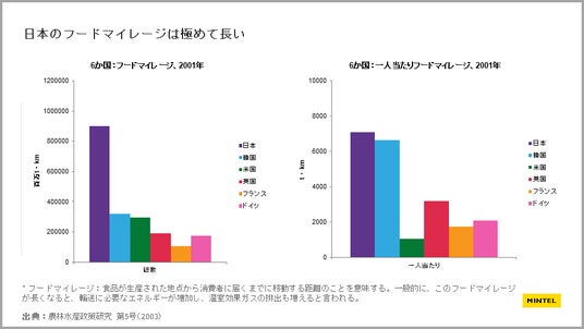 * フードマイレージ:食品が生産された地点から消費者に届くまでに移動する距離のことを意味する。