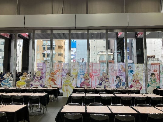 5月31日(土)発売「ブースターパック NEXT STEP」の実物カード展示や、ラブカ描きおろし魔法少女風衣装を着たスクールアイドル20人のスタンディ、またメンバーののぼりの展示も実施いたしました。