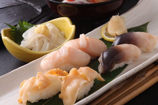 とれたての豊富な種類の魚介ネタと、炊きたてのご飯を人肌の温度で握ったシャリ。2つの特徴を併せ持った、握り寿司が名物です。