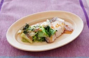 リーフミックスとぶりのレンジ蒸し ドレッシングがけ