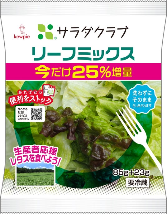 株式会社サラダクラブ(代表取締役社長:新谷昭人、本社:東京都調布市)は、2025年6月1日(日)から7月中旬頃までの期間限定で、「カットレタス」「リーフミックス」「リーフミックス ビッグパック」を25%増量して全国(北海道・東北・沖縄県を除く)で販売します。