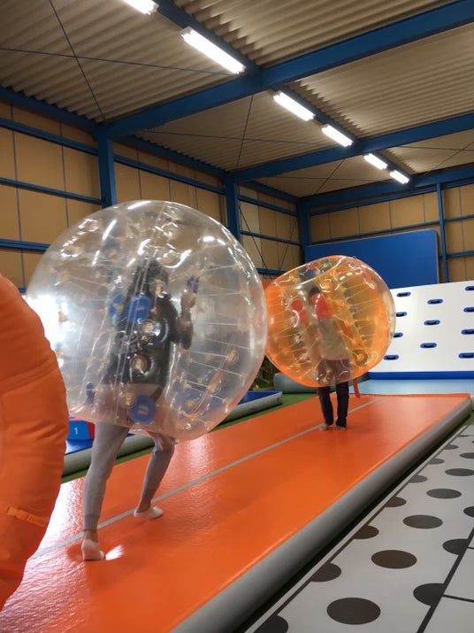 - バブルサッカー直径1.5mのバブルボールを装着し、ぶつかり合いながら得点を競う新感覚サッカー。安全性の高いエア遊具だから、年齢や運動経験を問わず楽しめます。