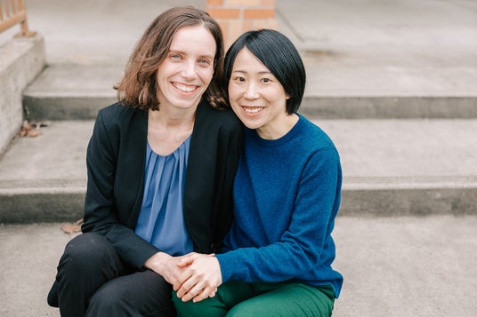 米国で同性婚が法制化された2015年には、テレサさんの出身地であるオレゴン州で結婚。生活基盤のある日本では法的な婚姻が認められていないことから、「結婚の自由をすべての人に訴訟」で関西原告として提訴。NPO法人虹色ダイバーシティ理事としても多様な社会の実現のために尽力している。麻智さんの好きな言葉は「千里の道も一歩から」。テレサさんの好きな日本語は「七転八起」。