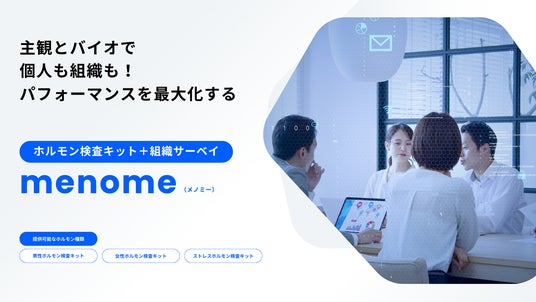menome(メノミー)は、「ホルモンバイオデータ × AIを活用したデータ分析」により、主観的・客観的データを統合的に活用し、個人と組織のパフォーマンス向上を支援するサービスです。