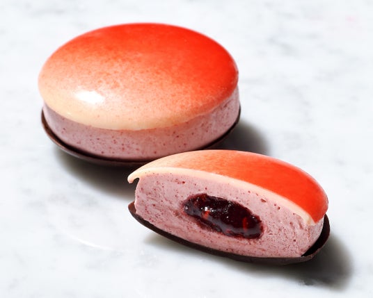 空気を含ませたチョコレートクリームは、ふわっと軽くなめらかな口どけ。チョコレートクリームの中に、甘酸っぱいコンフィチュールや香ばしいプラリネをとじ込めて、色鮮やかなチョコレートでサンドしました。暑い日には冷凍庫で冷やすと、チョコレートはパリッと、クリームはひんやりと、美味しくお召し上がりいただけます。