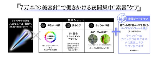 - うるおい持続:NMF*⁵滴下発想により夜間集中補給でふっくら柔らかく育てる