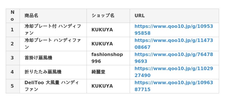 インターネット総合ショッピングモール「Qoo10」を運営するeBay Japan合同会社(本社:東京都港区、代表取締役:グ ジャヒョン)は、「扇風機・サーキュレーター」の販売数TOP5*を発表いたします。