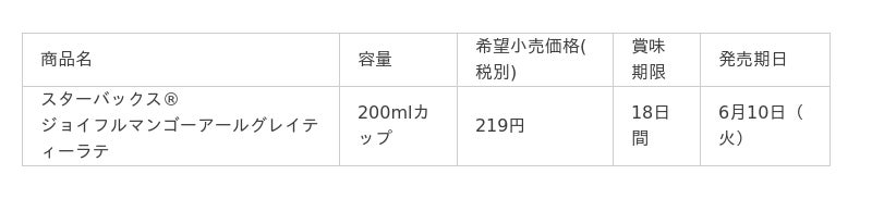 スターバックス・コーポレーション(本社:米国 シアトル、CEO:ブライアン・ニコル)と、サントリー食品インターナショナル株式会社(本社:東京都、社長:小野真紀子)は、スターバックスのチルドカップシリーズより「スターバックス(R) ジョイフルマンゴーアールグレイティーラテ」を、全国のセブン‐イレブンなどで6月10日(火)から期間限定で発売します。