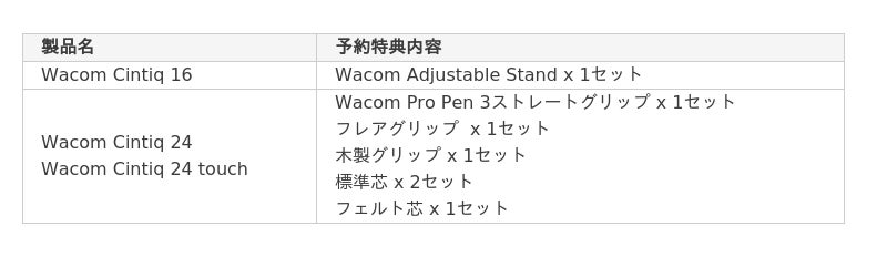 予約期間内に【公式】ワコムストアで「Wacom Cintiq」シリーズをご予約いただくと台数限定で以下をプレゼントします。