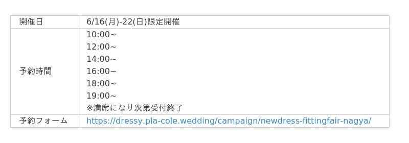 【イベント情報】6/16(月)-22(日)限定開催最新トレンドドレスが試着できる!『新作ドレス試着フェア』 in KITTE名古屋