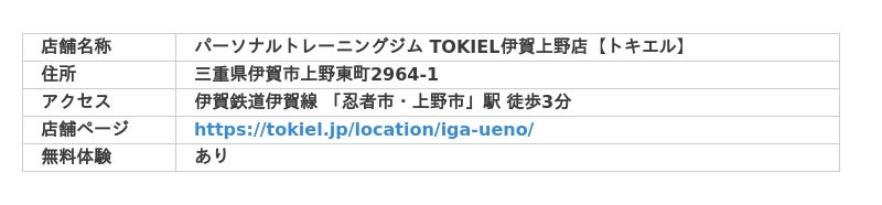 伊賀鉄道伊賀線 「忍者市・上野市」駅『パーソナルトレーニングジム TOKIEL伊賀上野店【トキエル】』がオープン【〒518-0861 三重県伊賀市上野東町2964-1】パーソナルジム 伊賀市 伊賀上野
