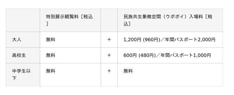 ※ 国立アイヌ民族博物館の基本展示室の観覧料は、民族共生象徴空間(ウポポイ)の入場料金に含まれます。