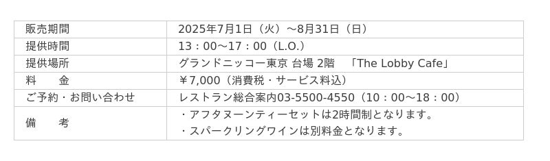 「東京を楽しむ 東京をくつろぐ」ひとときをお届けするグランドニッコー東京 台場(住所:東京都港区 代表取締役社長 総支配人:塚田 忠保)は、吹き抜けのロビーフロアに心地よい光が降り注ぐ「The Lobby Cafe」にて、旬の桃づくしな『ピーチアフタヌーンティーセット』を2025年7月1日(火)~8月31日(日)の期間限定で提供いたします。