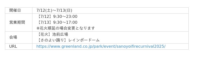 毎年7月に開催している「さのよいファイヤーカーニバル」を2025年は7月12日(土)~7月13日(日)の2日間にわたって開催いたします。