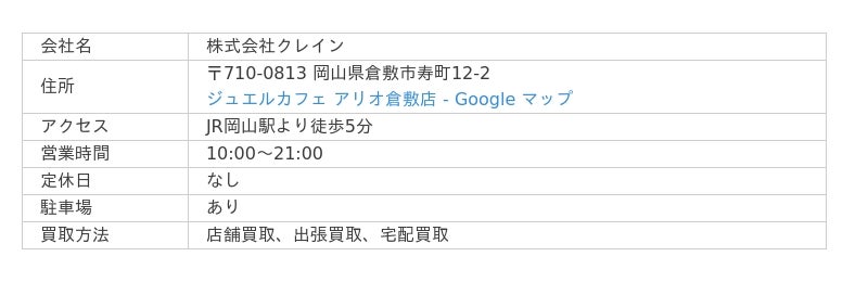 ジュエルカフェは、その名の通りカフェのような雰囲気で、女性も気軽に立ち寄れる買取専門店です。全国300店舗以上を展開し、岡山県内には9店舗あります。