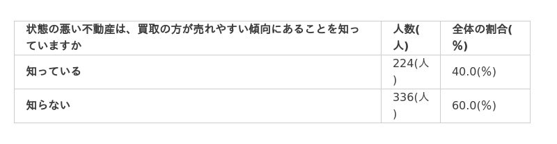 状態の悪い不動産は、買取の方が売れやすい傾向にあることを知っている方は40.0%