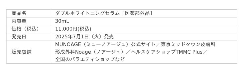 シミを生ませない。「白の衝撃」再生医療※1発想のドクターズコスメ「MUNOAGE」からW美白有効成分※2配合の導入美白※2美容液「ミューノアージュ ダブルホワイトニングセラム」2025年7月1日新発売