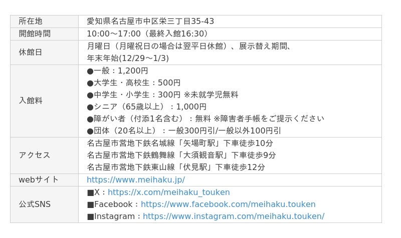 8/31(日)まで開催中本展では、織田家や尾張地方にゆかりある刀剣をご紹介。主な展示品として、「織田信長」の末弟で、武将の「織田有楽斎(織田長益)」が、「豊臣秀頼」から拝領した国宝「短刀 銘 来国光(名物 有楽来国光)」や、「織田信長」の父であり、「尾張の虎」と称された武将「織田信秀」伝来の特別重要刀剣「刀 無銘 景光 織田弾正忠信秀摺上之」などの貴重な名刀を鑑賞することができます。刀剣の伝来や武将のエピソードとともにお楽しみください。