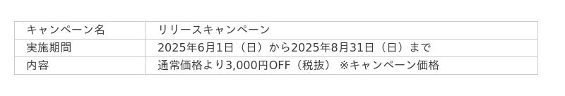 通常価格より期間限定で3,000円OFF(税抜)のキャンペーン価格でご提供いたします。