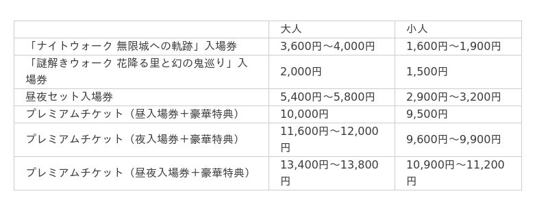 ※「ナイトウォーク 無限城への軌跡」については4歳以下無料。