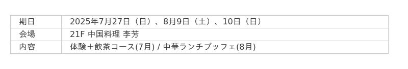 21階 中国料理 李芳 / 飲茶コース(7月)・中華ランチブッフェ(8月)