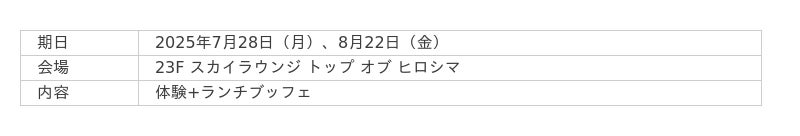 【グランドプリンスホテル広島】多彩な体験とランチがセットになった「夏のキッズプログラム」を開催