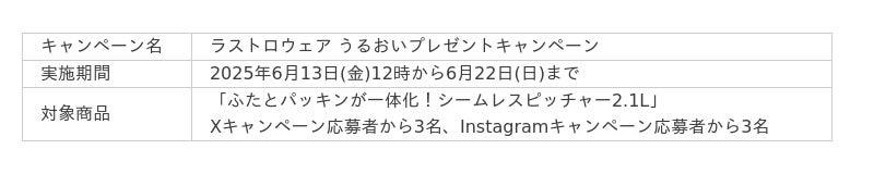 2025年6月13日(金)12時から6月22日(日)まで、ラストロウェアXとラストロウェアInstagramのフォロワーの皆さまを対象に、抽選で賞品をご提供します。応募方法は簡単、是非ご応募をしてください。