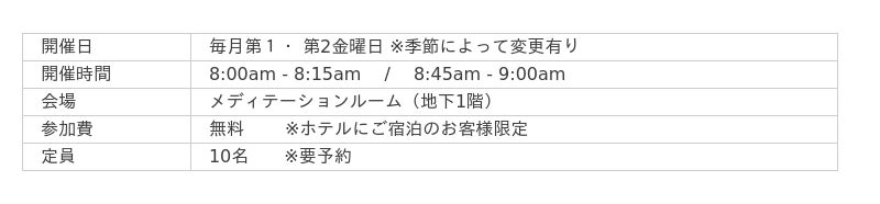 (※メディテーションルームは、イベント開催日以外も、宿泊ゲストは事前予約制にて無料でご利用可能)