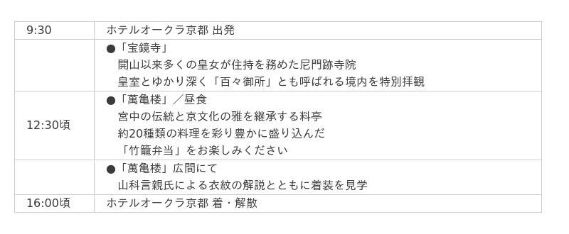 *小学生以下のお子様はご参加いただけません。 *実施日の前日または当日のホテルオークラ京都のご宿泊優待もございます。