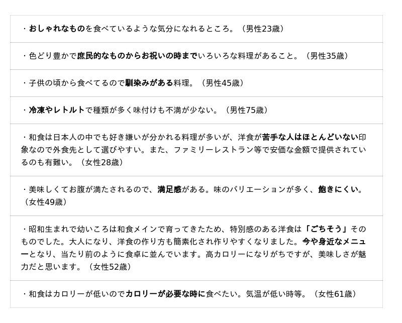 自宅で洋食を食べる状況や洋食の魅力などについて聞いています。調査結果をお知らせいたします。
