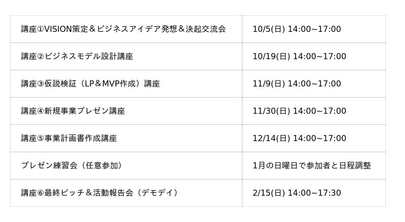 ・起業や新規事業創出に興味のある方(既に起業していても参加可能)
